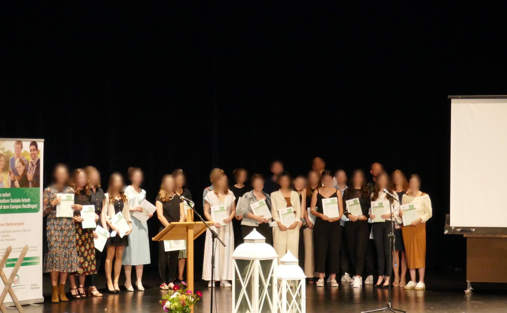Kurz und gut, das blöde Ding und auch die Eintrittskarten hätten wir gar nicht benötigt. Nun denn, es wurde zwei Stunden allen möglichen Leuten gedankt, es gab Reden ohne Ende und es wurde auch immer wieder erwähnt was für eine Leistung es war diese Hochschule hier zu starten. Was für eine anstrengende und aufregende Zeit es war zwischen der Baustelle zu lernen und, dass von Allen echte Pionierarbeit geleistet wurde. Es war ganz nett gemacht, allerdings ging viel Zeit drauf und als dann die Reden vorbei waren und eigentlich auch schon die Nachfeier vorbei sein sollte, wurden die Zeugnisse im Hauruckverfahren überreicht. Das fand ich etwas schade. Es gab' keine persönlichen Worte und auch keine Preise - aber so ist das wohl beim ersten Jahrgang, auch da lernt man. Wir sind auf alle Fälle stolz auf unser Mädchen für ihre "ausgezeichnete" Leistung!